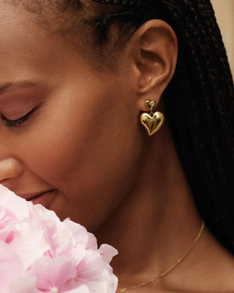 En lekfull och mjuk hjärtform bjuder serien Amorina på. Här i maxade studs i 14K guldplätering som sitter bekvämt på örat tack vare större backparts. Härligt lättstylade, och passande som kärleksfull gåva till någon du tycker om. Matchar fint med seriens längre halsband.