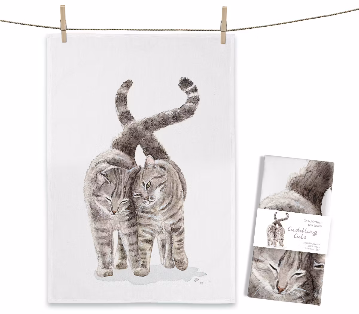 Charmiga kökshanddukar i ren bomull med motiv av katter. Fler motiv finns.