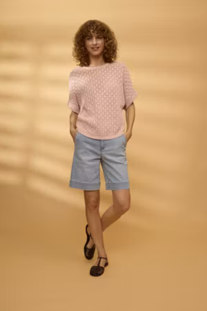 Fin mönsterstickad tröja med vida korta ärmar. Klassisk rundad hals och ribbstickad kant. Finns även i taupe.