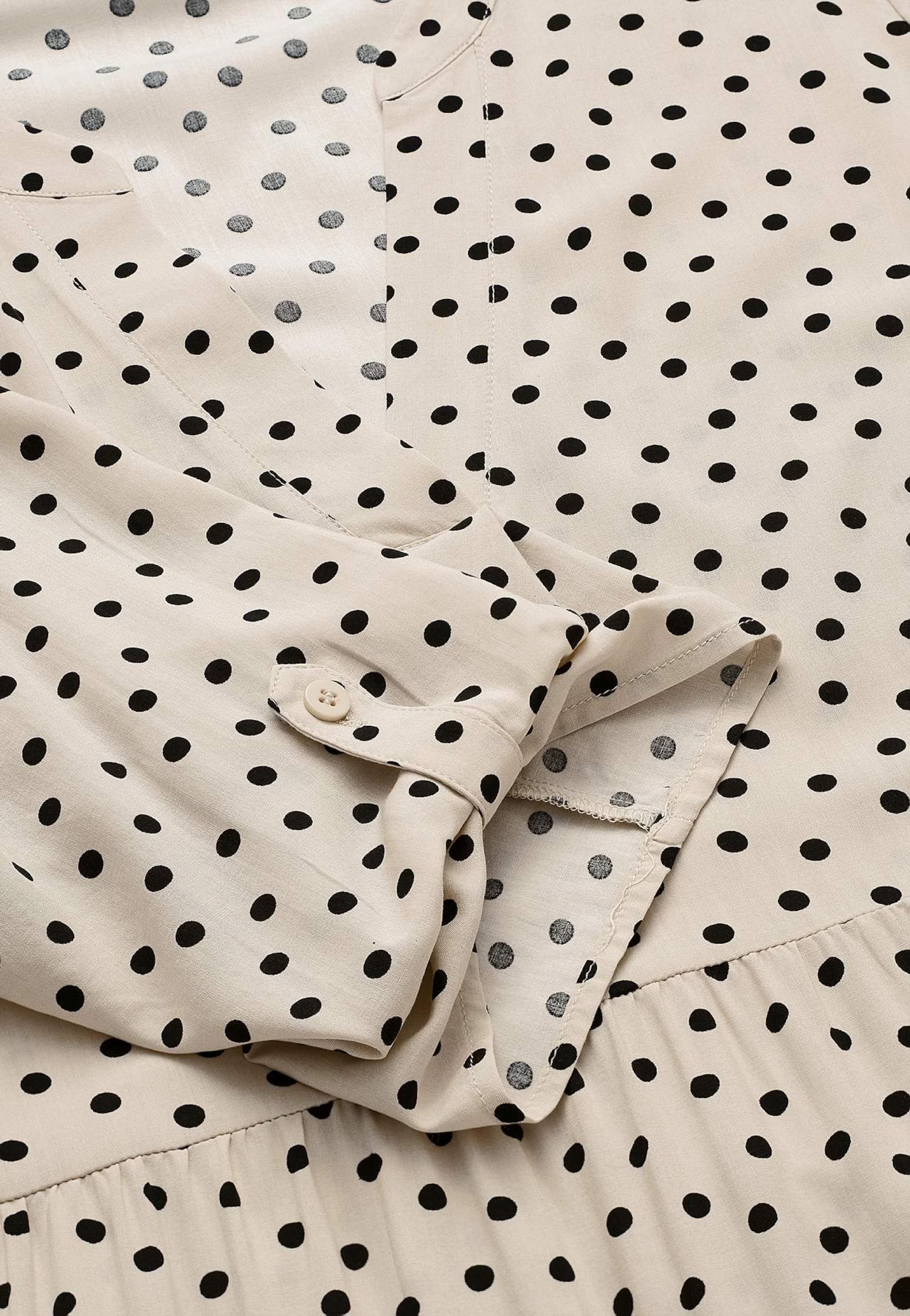 Härlig klänning i klassisk modell sydd i våder. Sval och skän viscose kvalitet med lös passform. V-ringad modell i beige med svarta prickar. Uppvikbar 3/4 dels ärm med slejf. Insnitt vid bysten för fin passform.