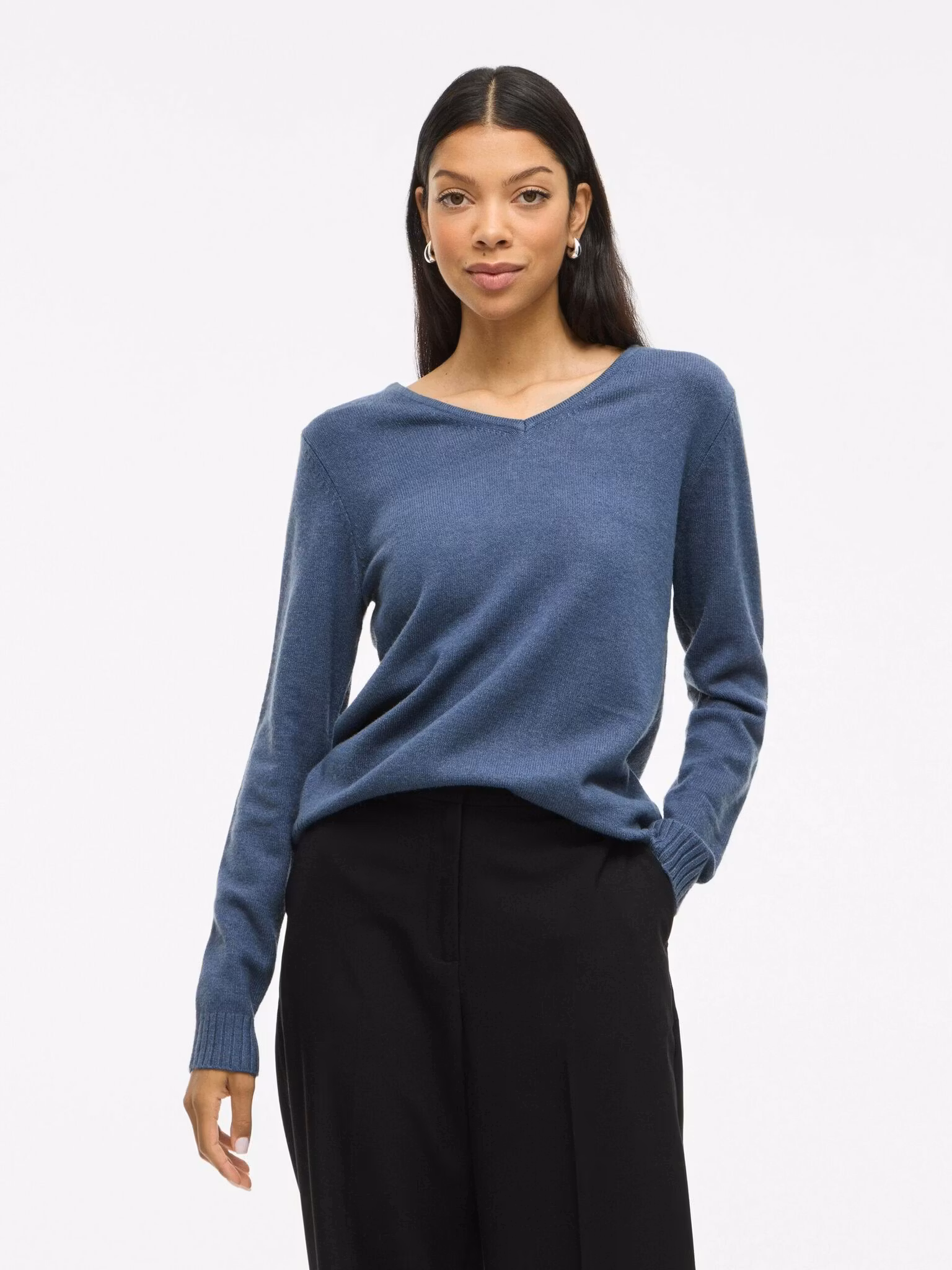 Ljuvlig stickade baströja i den nya fina vårfärgen Vintage Indigo. Mjuk och mysig med snygg v-ringning. Perfekt både till jobbet med en snygg blus under eller som den är till ett par jeans.
