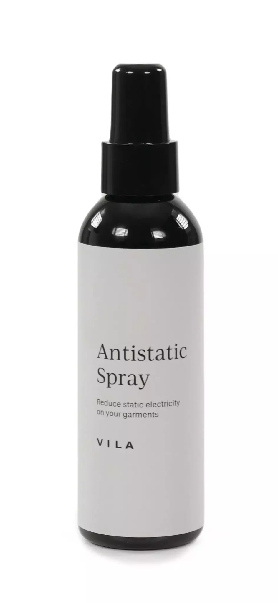 Vilas antistatspray är ett bekvämt och effektivt hjälpmedel för att ta bort statisk elektricitet från kläder. Sprayen gör kläderna bekväma att bära och förhindrar att de fastnar på kroppen.